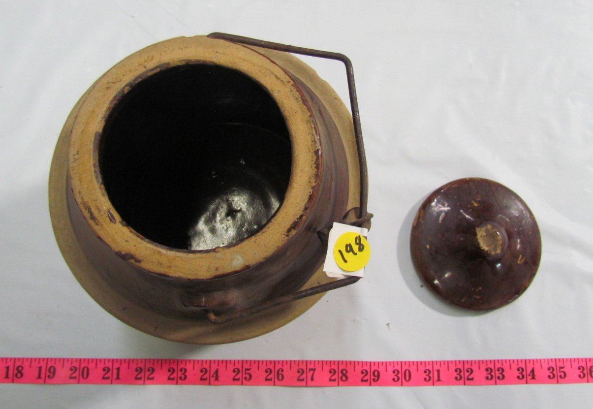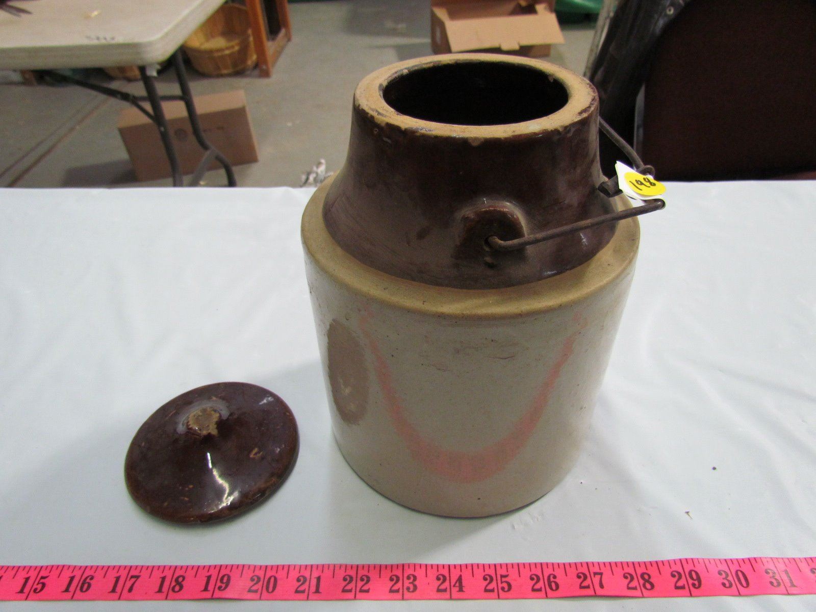 1 GAL. LIDDED CROCKERY CONTAINER W/ WIRE HANDLE