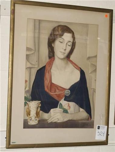 1 GEORGE LAURENT NELSON, Lady with rose, 25"x18" w/c, framed, CONDITION: light toning, no damage or repairs.