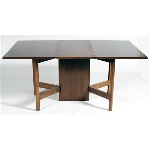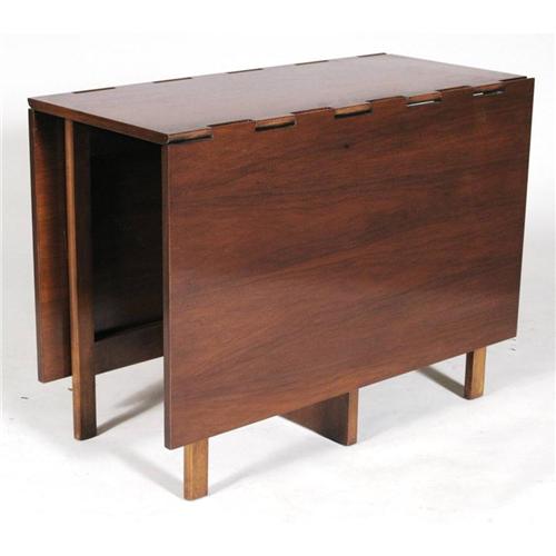 1 GEORGE NELSON DROP LEAF TABLE FOR HERMAN MILLER with interlocking hinged top PACKING AND SHIPPING must be handled by 3rd party shipper. CONDITION REPORT: excellent with a light 6" scratch on one leaf.