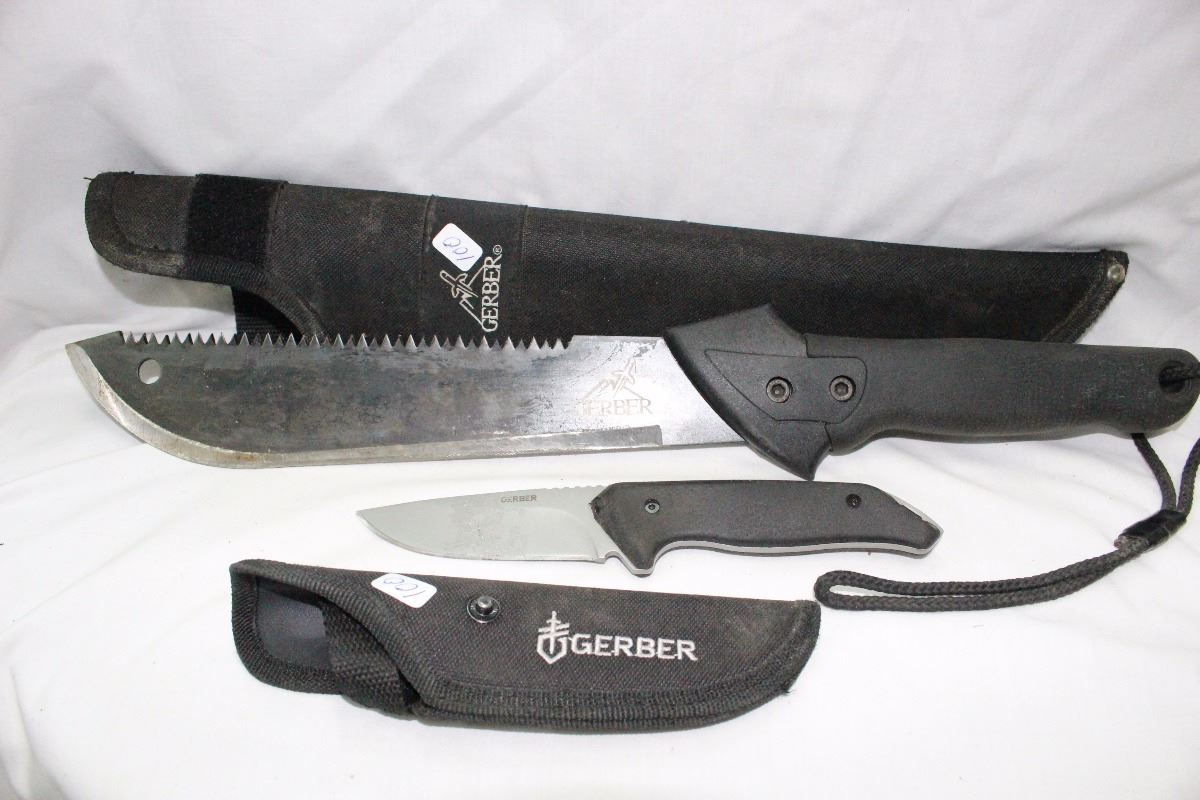 1 GERBER Machette and 1 GERBER Hunting Knife Both with Sheaths