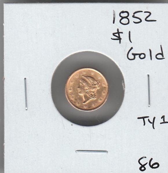 $1 GOLD 1852 LIBERTY HEAD TYPE 1