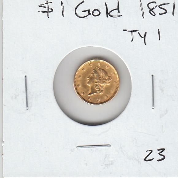 $1 GOLD LIBERTY HEAD 1851 TYPE 1