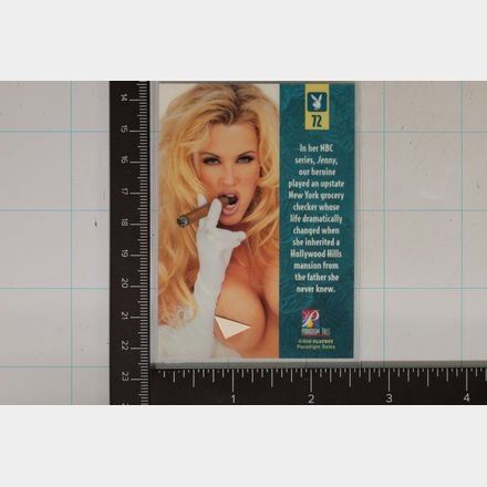 ADULT THEMED PLAYBOY LAMINATED CARD #72, SHE IS FULLY NUDE ON THE FRONT SIDE AND TOPLESS ON THE BACK SIDE. WE COVERED THE AREAS WITH SMALL PAPER SO WE DON'T VIOLATE THE SITES POLICY, BUT WE ASSURE YOU FULLY NUDE