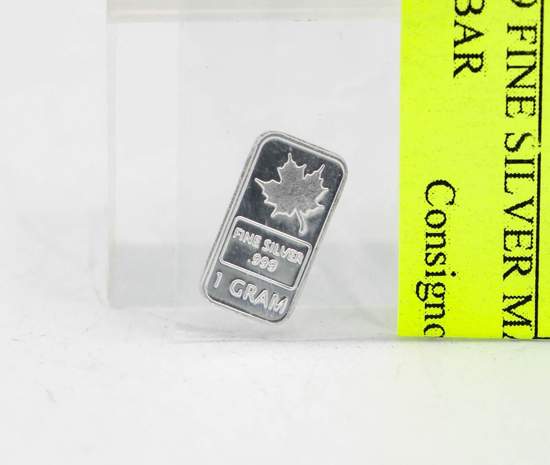 1 GRAM .999 FINE SILVER MAPLE LEAF MINI BAR