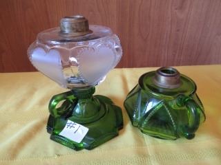 1 GREEN & 1 GREEN/CLEAR GLASS BEADED HEART FINGER LAMP BASES