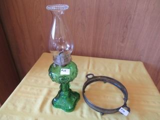 1 GREEN SQUARE SWIRL DESIGN LAMP WITH CHIMNEY & SILVER CASSEROLE HOLDER