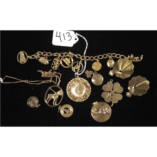 1 GROUP LOT OF JEWELRY many pieces marked 14kt (not individually tested) 140 grams PACKING AND SHIPPING (excluding insurance) by Fairfield Auction to points within the Continental U.S.A. (international must be handled by 3rd party shipper) $20. CONDITION REPORT: overall good.