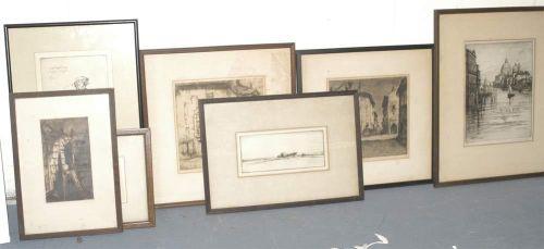 1 GROUP OF (10) PENCIL SIGNED ETCHINGS including two by Andre Smith, CONDITION: some with toning, mat burns, foxing, 2 unframed, one broken glass, PACKING AND SHIPPING (excluding insurance) AVAILABLE WITHIN CONTINENTAL U.S. BY FAIRFIELD AUCTION FOR $70 . BUYER MAY ALSO PICK-UP OR USE A 3RD PARTY FOR PACKING AND SHIPPING