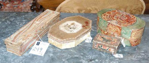 1 GROUP OF FOUR DECORATED PANTRY BOXES, 19th century, packing and shipping $30