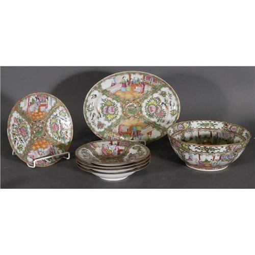1 GROUP OF ROSE MEDALION seven pieces incl. 13" platter and 10" bowl, late 19th/early 20th century