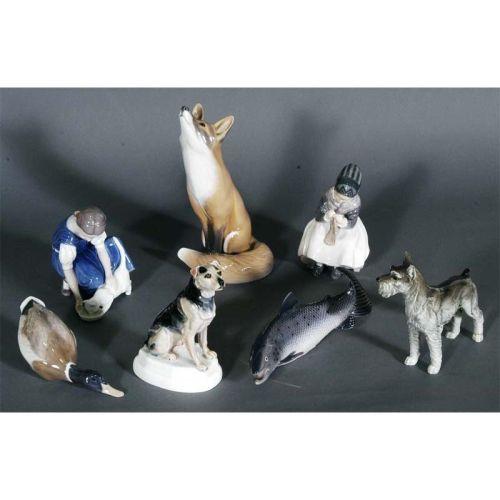 1 GROUP OF SEVEN PORCELAIN<BR>FIGURES including Meissen<BR>terrier, Royal Copenhagen and<BR>B&G <BR>CONDITION REPORT: excellent.<BR>PACKING AND SHIPPING - $50 excluding insurance within the Continental USA only (International shipping through 3rd party shipper. We recommend the Newtown UPS Store.)