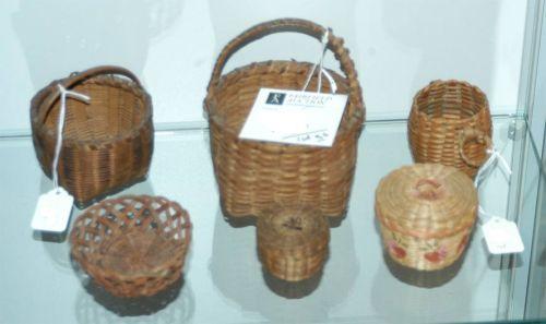1 GROUP OF SIX MINIATURE BASKETS, ranging from 2"-6" high, packing and shipping $20