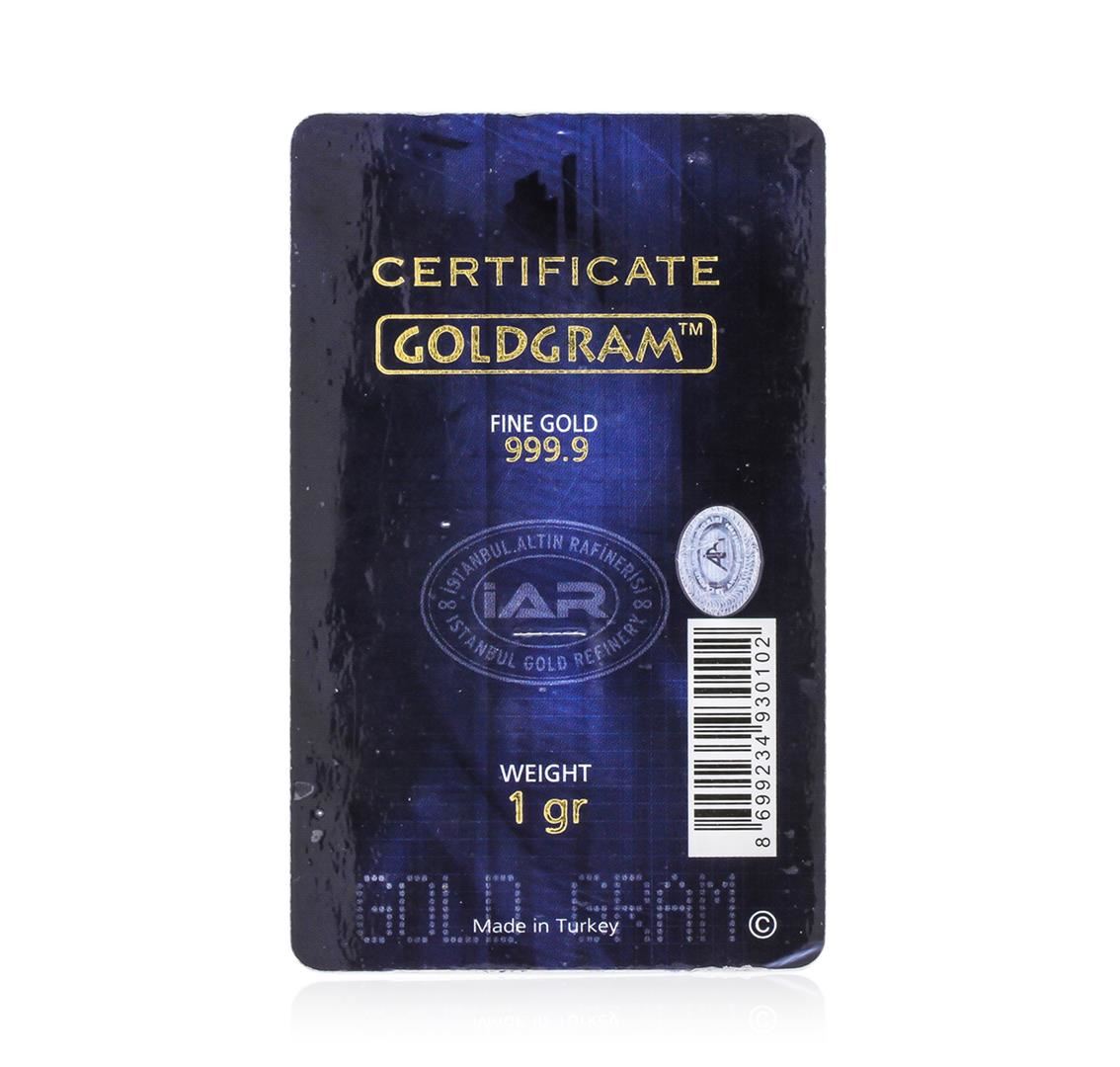 One 1 Gram Istanbul Gold Refinery Bar .9999 Fine.