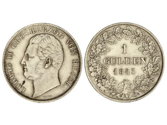 1 Gulden. 1845. LUIS II. HESSE-DARMSTADT. AR. (Manchita en anverso). KM-309. EBC-.