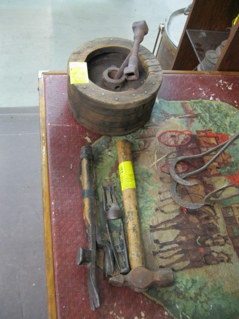 1 HAMMER AND A HAMMER PRY BAR, WOOD WHEEL