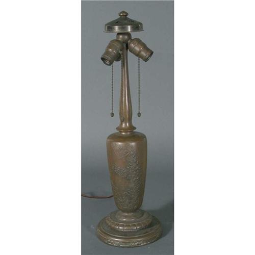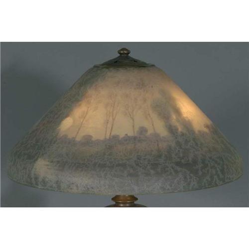 1 HANDEL REVERSE PAINTED TABLE LAMP with scenic decoration signed and numbered 5664 18" diameter circa 1920 PACKING AND SHIPPING must be handled by 3rd party shipper. CONDITION REPORT: excellent overall with one very small nick to rim of shade.