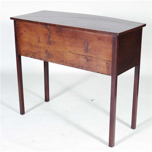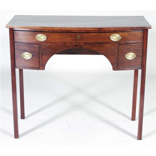 1 HEPPLEWHITE MAHOGANY SERVER with bow front, 44" wide circa 1810 PACKING AND SHIPPING must be handled by 3rd party shipper. CONDITION REPORT: excellent with refinished surface.