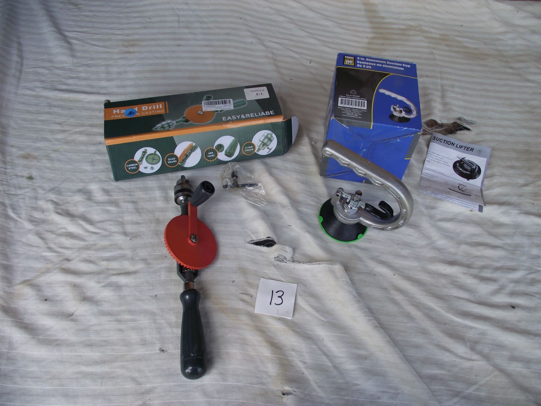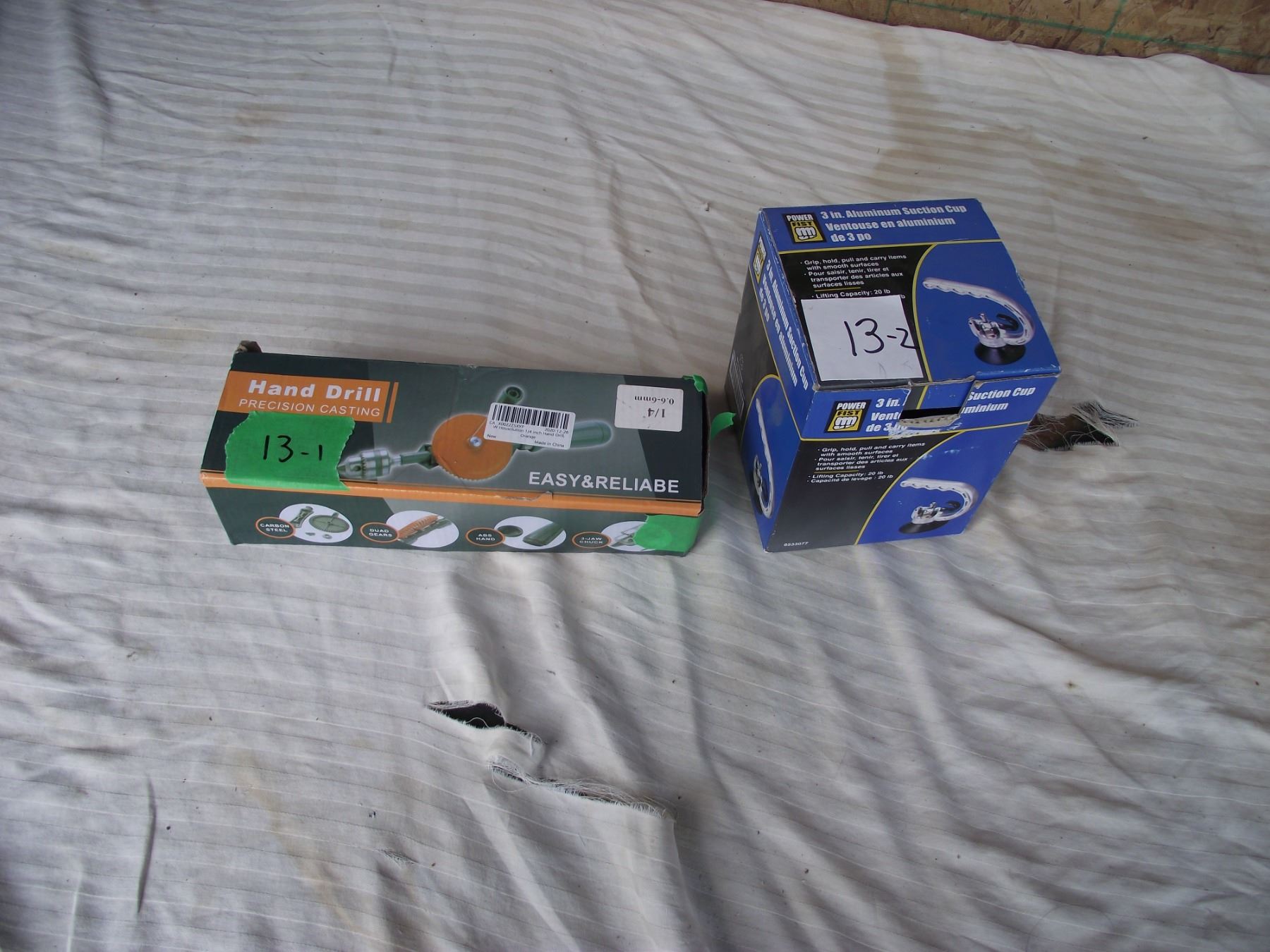1 Hand drill (new in box) & 1 suction cup (new in box)