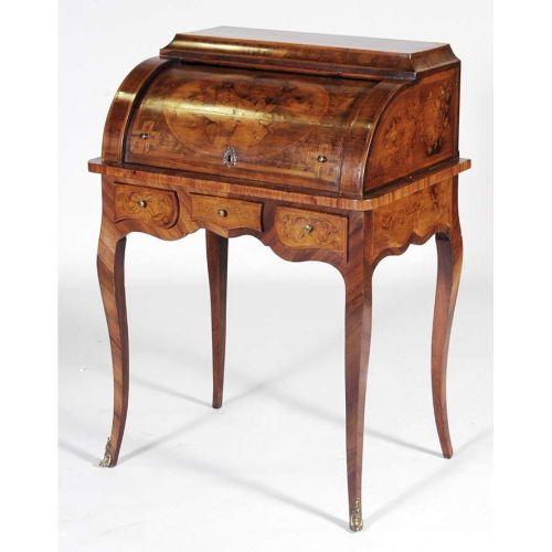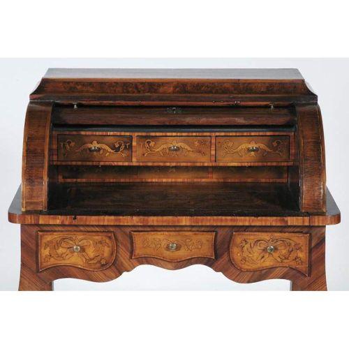 1 ITALIAN MARQUETRY LADIES<BR>CYLINDER DESK<BR>cira 1900 <BR>CONDITION REPORT: various small inlay repairs and refinished.<BR>PACKING AND SHIPPING -see recommended.