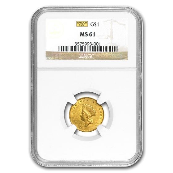 One piece $1 Indian Head Gold Type 2 MS-61 NGC/PCGS