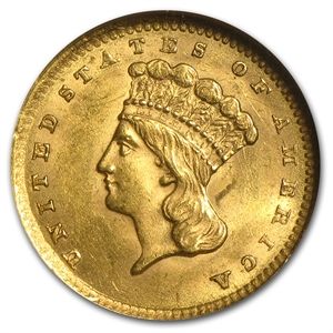 $1 Indian Head Gold - Type 3 - MS-62 NGC or PCGS **|**|** Year: 1854-1889 ; Mint Mark: MS-62 ; Grade: Varies ; Denomination: 1 ; MSRP: $1100