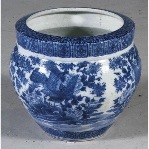1 JAPANESE BLUE & WHITE<BR>JARDINAIRE<BR>16" high, 17" diameter,<BR>19th century <BR>CONDITION REPORT: excellent.<BR>PACKING AND SHIPPING -see recommended.