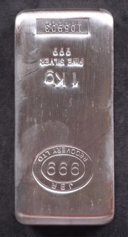 1 Kilogram fine silver JBR Recovery LTD bar serialized.