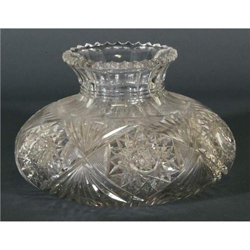 1 LARGE AMERICAN BRILLIANT PERIOD SQUAT CUT GLASS VASE 7" high, 12" diamter PACKING AND SHIPPING (excluding insurance) by Fairfield Auction to points within the Continental U.S.A. (international must be handled by 3rd party shipper) $40. CONDITION REPORT: excellent with minor nicks.