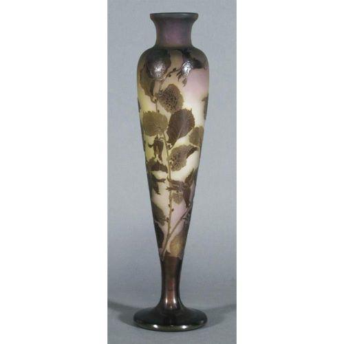 1 LARGE GALLE CAMEO GLASS VASE<BR>20 1/2" high<BR>early 20th century <BR>CONDITION REPORT: excellent.<BR>PACKING AND SHIPPING (excluding insurance) by Fairfield Auction to points within the Continental U.S.A. (all other international must be handled by 3rd party shipper) $60.