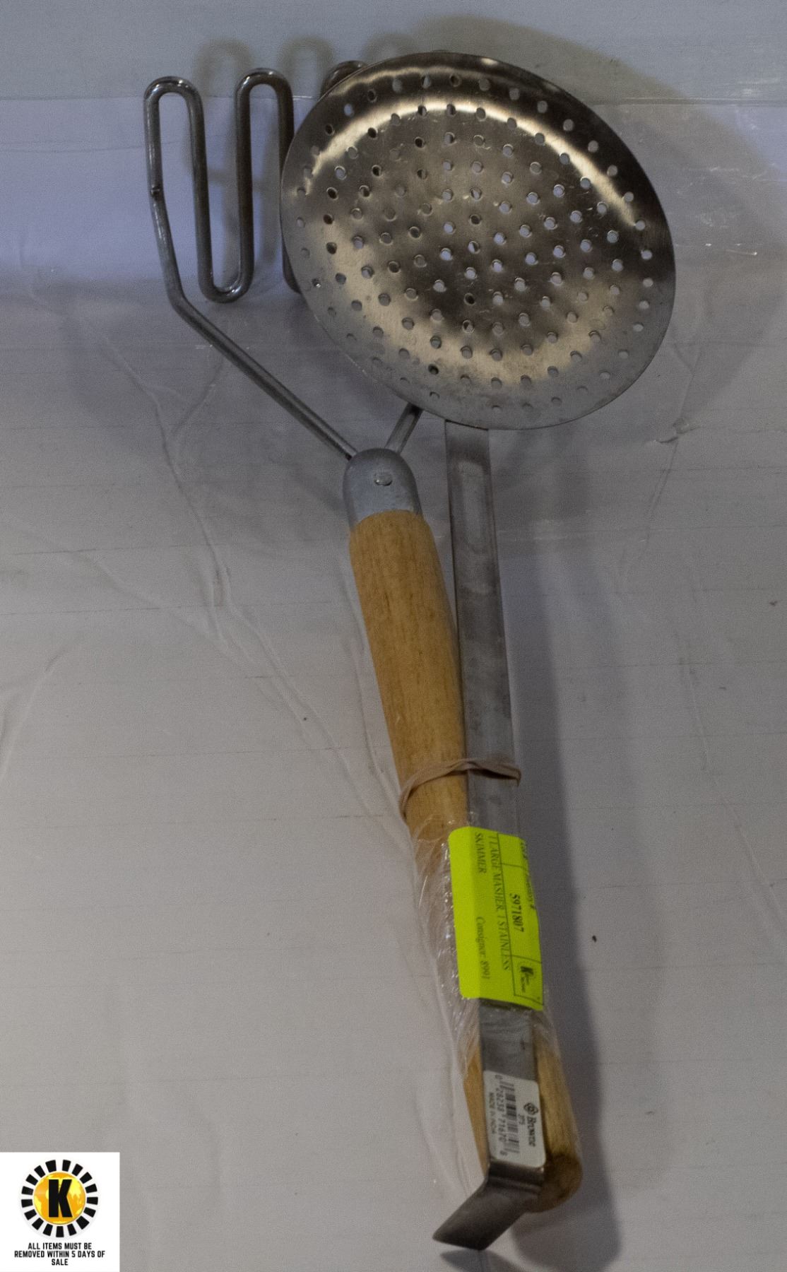 1 LARGE MASHER, 1 STAINLESS SKIMMER