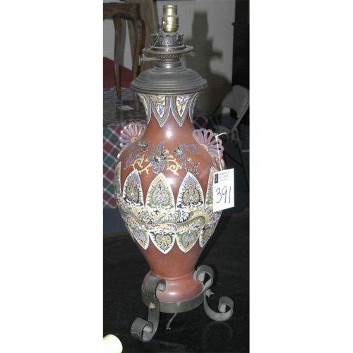 1 LARGE SATSUMA VASE adapted to lamp, 21"