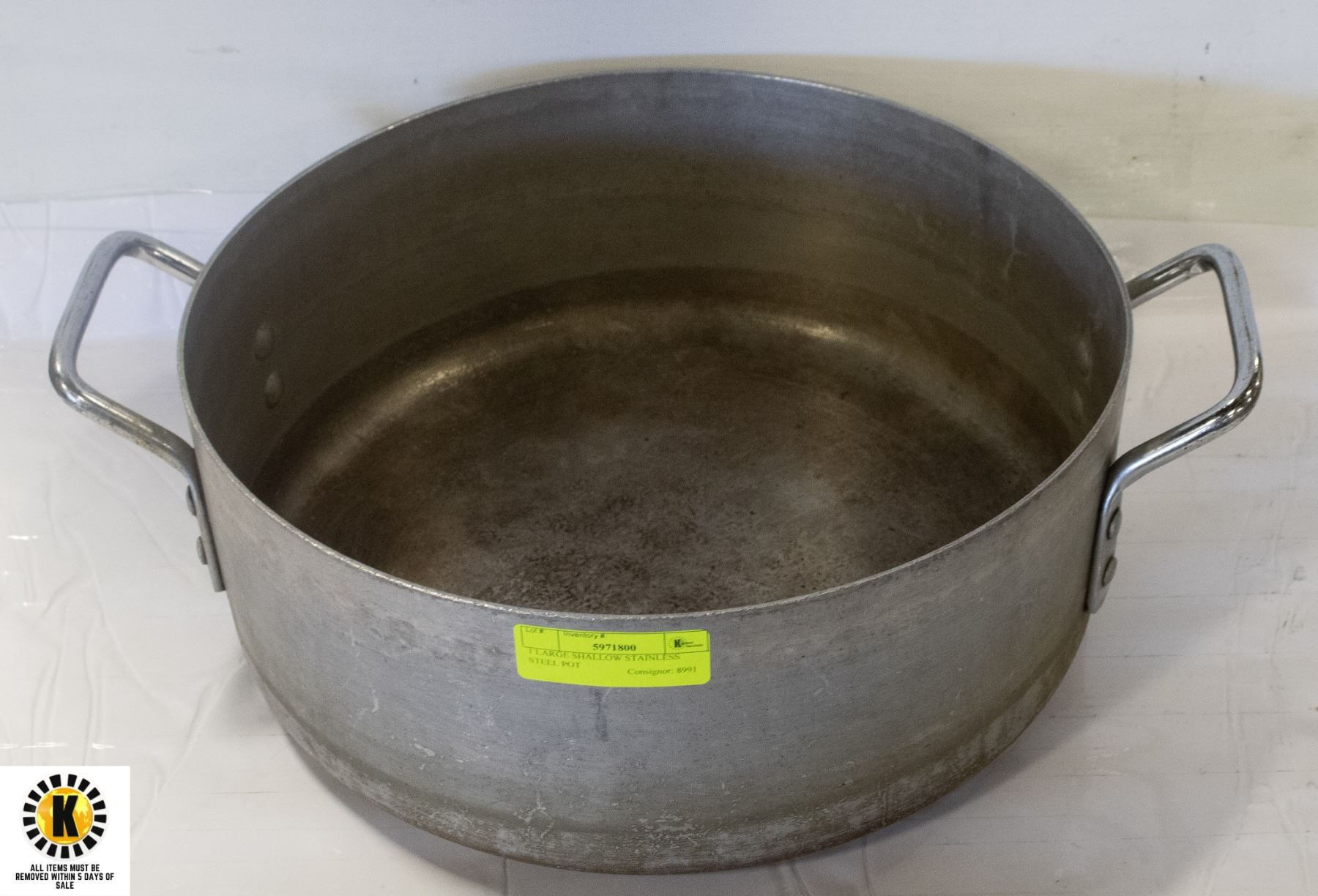 1 LARGE SHALLOW STAINLESS STEEL POT