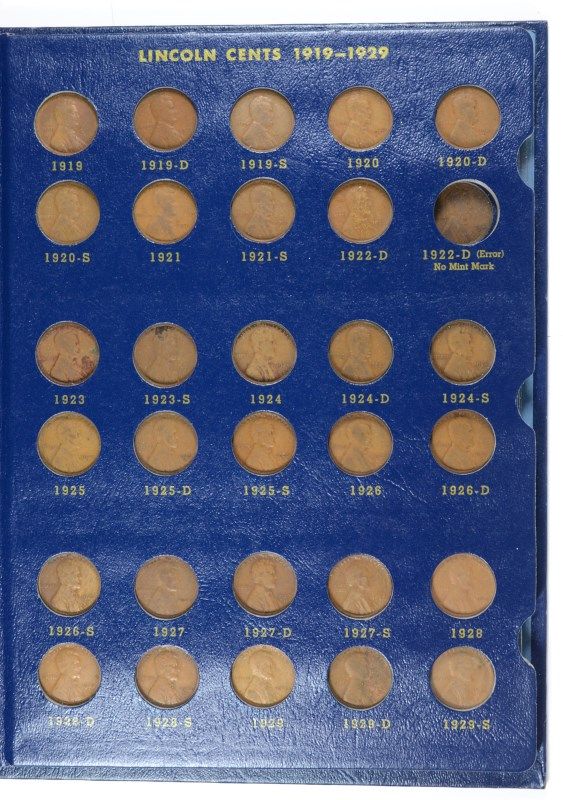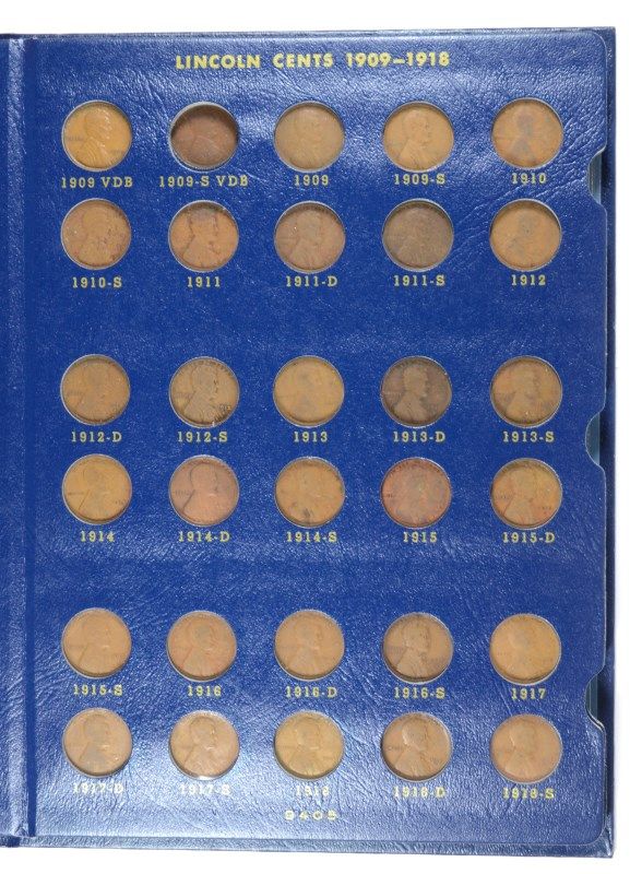 #1 LINCOLN CENT W/WHITMAN ALBUM (NO 09-S VDB, 22 NO D) AVG CIRC