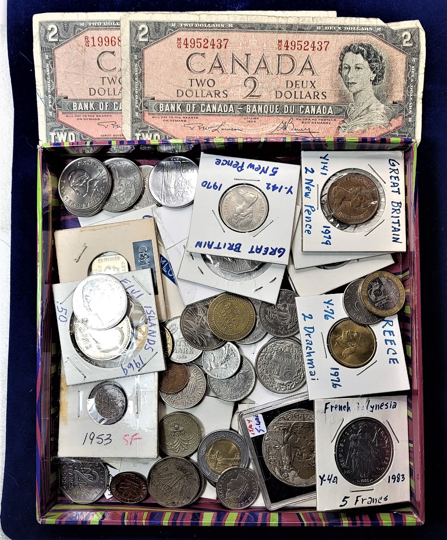 56 WORLD COINS INCLUDING ITALIAN 1915 COIN, UK 1922 LARGE PENNY, ETC.