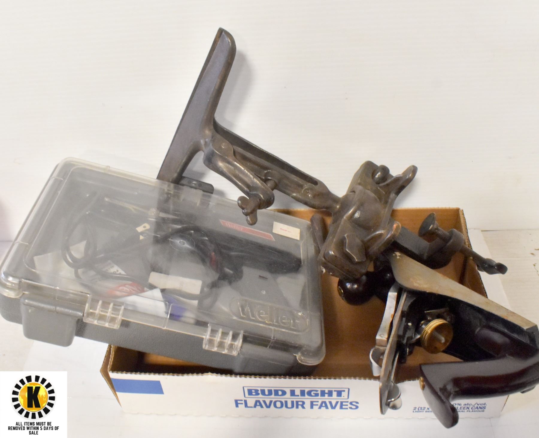 1 LOT OF OLD PLANE, VICE AND SOLDERING IRON