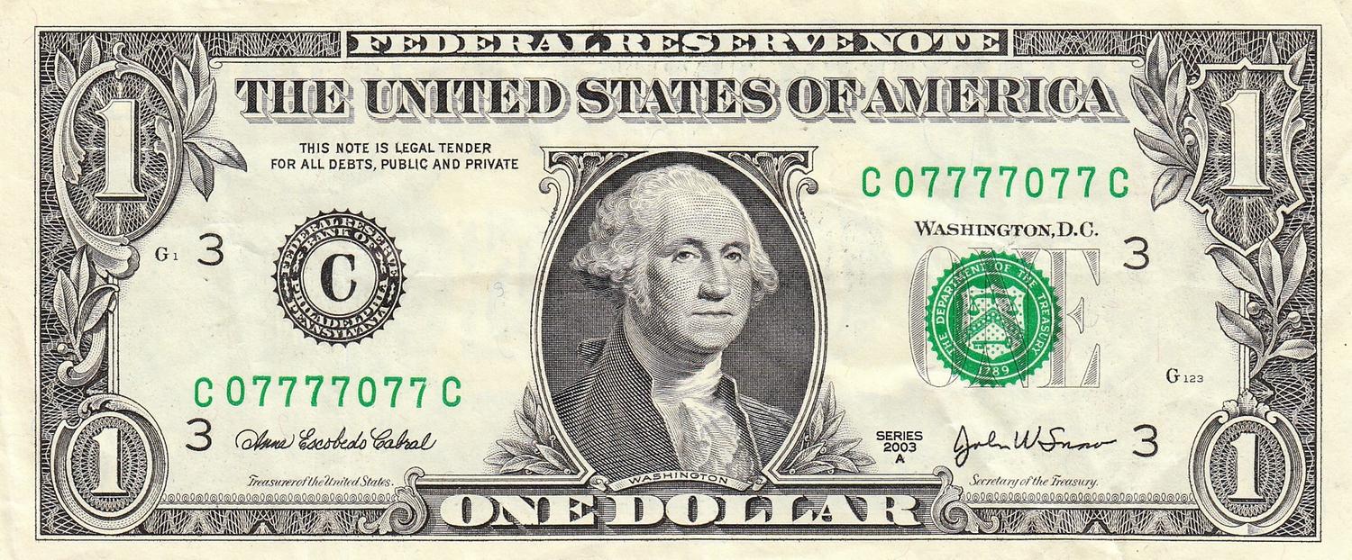 $1 LUCKY 07777077 SERIAL NUMBER !!! FANCY NUMBER