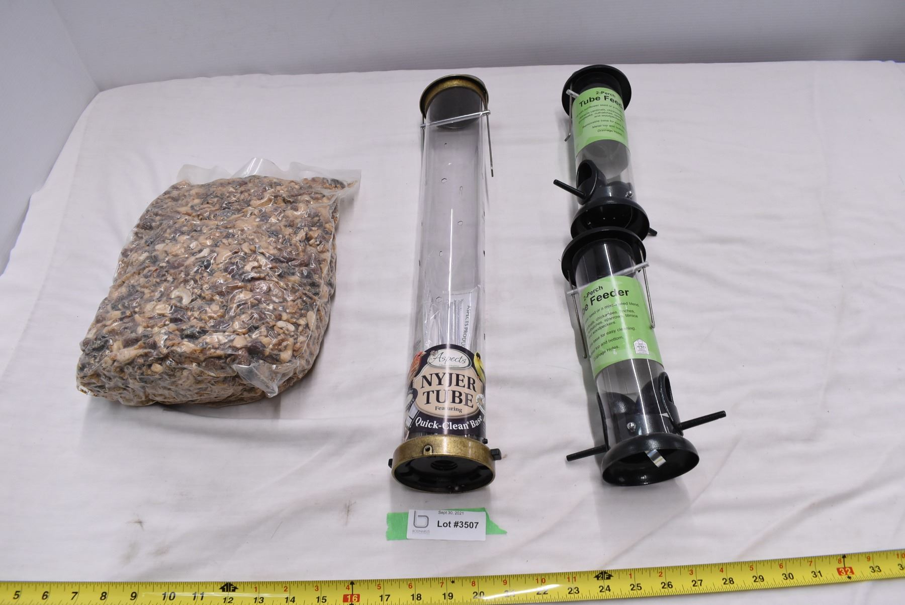 1 Large, 2 Small bird feeders w/ bag of bird feed