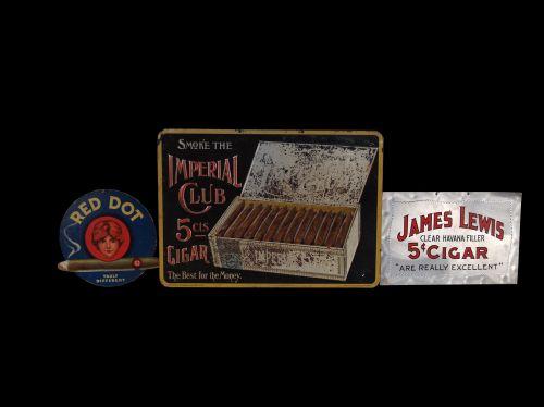 1 Lot of 3 Cigar Ads Red Dot, Imperial Club & James Lewis 6" Diam, 10x13, 6x9