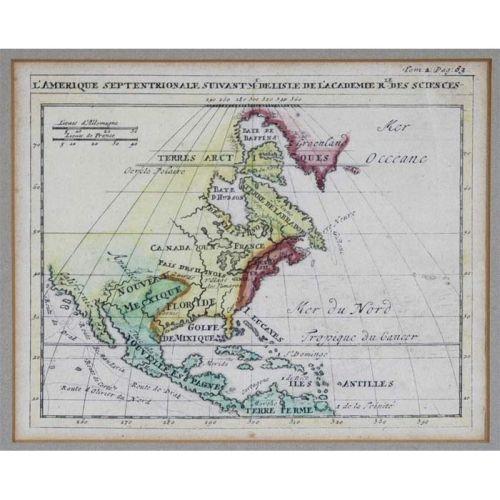 1 MAP OF NORTH AMERICA<BR>5"x6 1/2",<BR>18th century <BR>CONDITION REPORT: toning.<BR>PACKING AND SHIPPING - $30 excluding insurance within the Continental USA only (International shipping through 3rd party shipper. We recommend the Newtown UPS Store.)