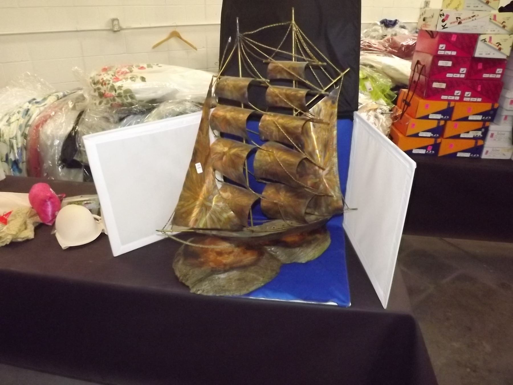 1 METAL SAILING SHIP, MOUNTED ON BURAL SLAB