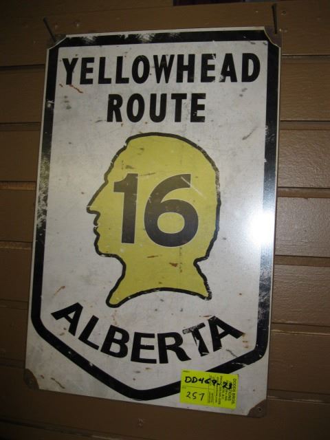 1 METAL YELLOW HEAD ROUTE 16 ALBERTA SIGN