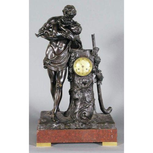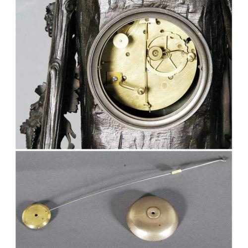 1 MONUMENTAL FRENCH EMPIRE<BR>BRONZE MANTLE CLOCK<BR>27 1/2" high, silk suspension.<BR>circa 1810 <BR>CONDITION REPORT: excellent, missing back cover for movement.<BR>PACKING AND SHIPPING -see recommended.