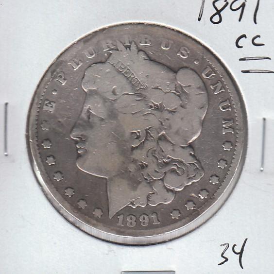 $1 MORGAN SILVER 1891 CC CARSON CITY