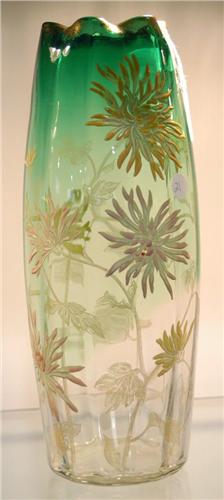 1 MOSER ENAMELED GLASS VASE 13" high unsigned, packing and shipping $30