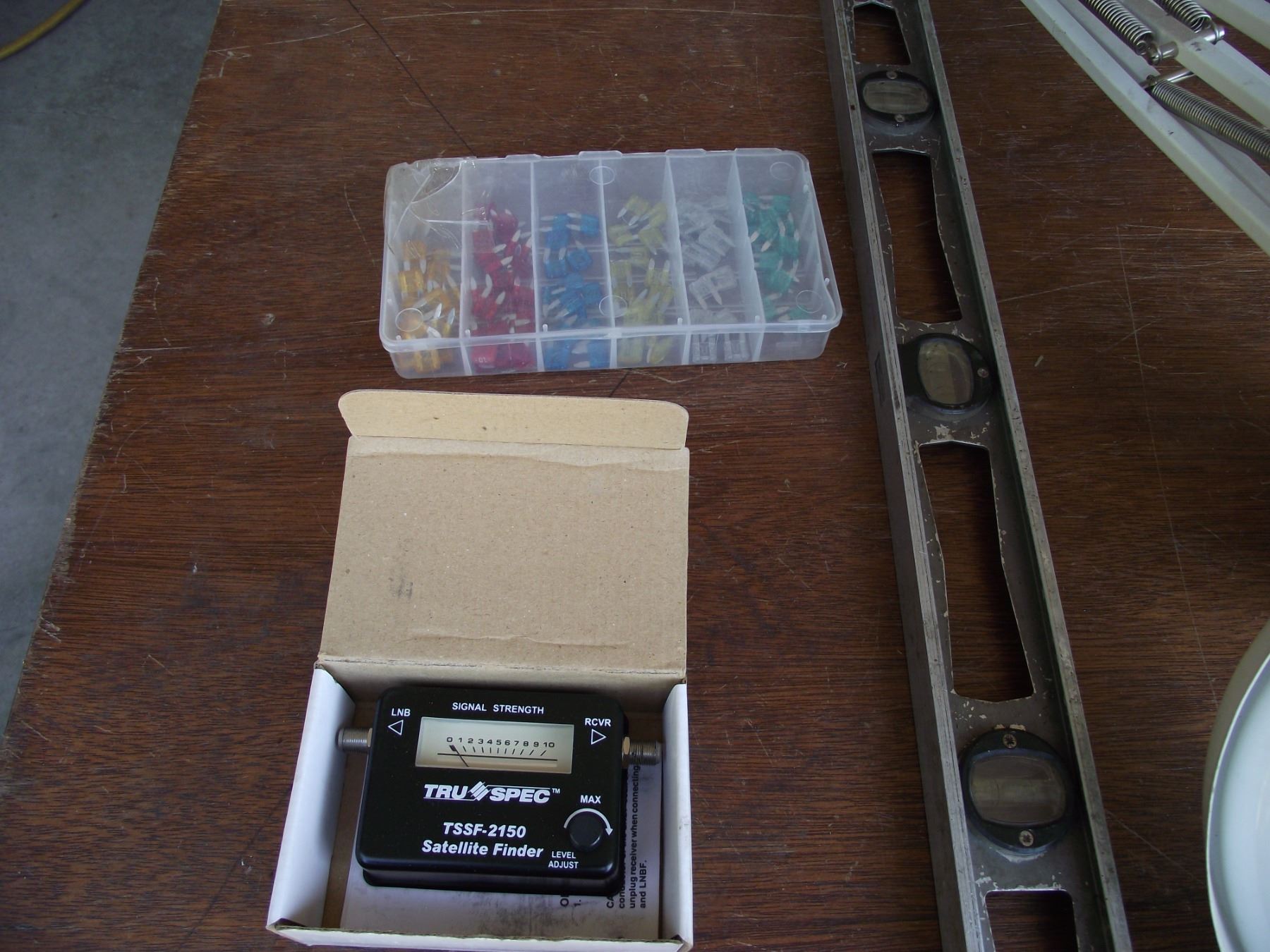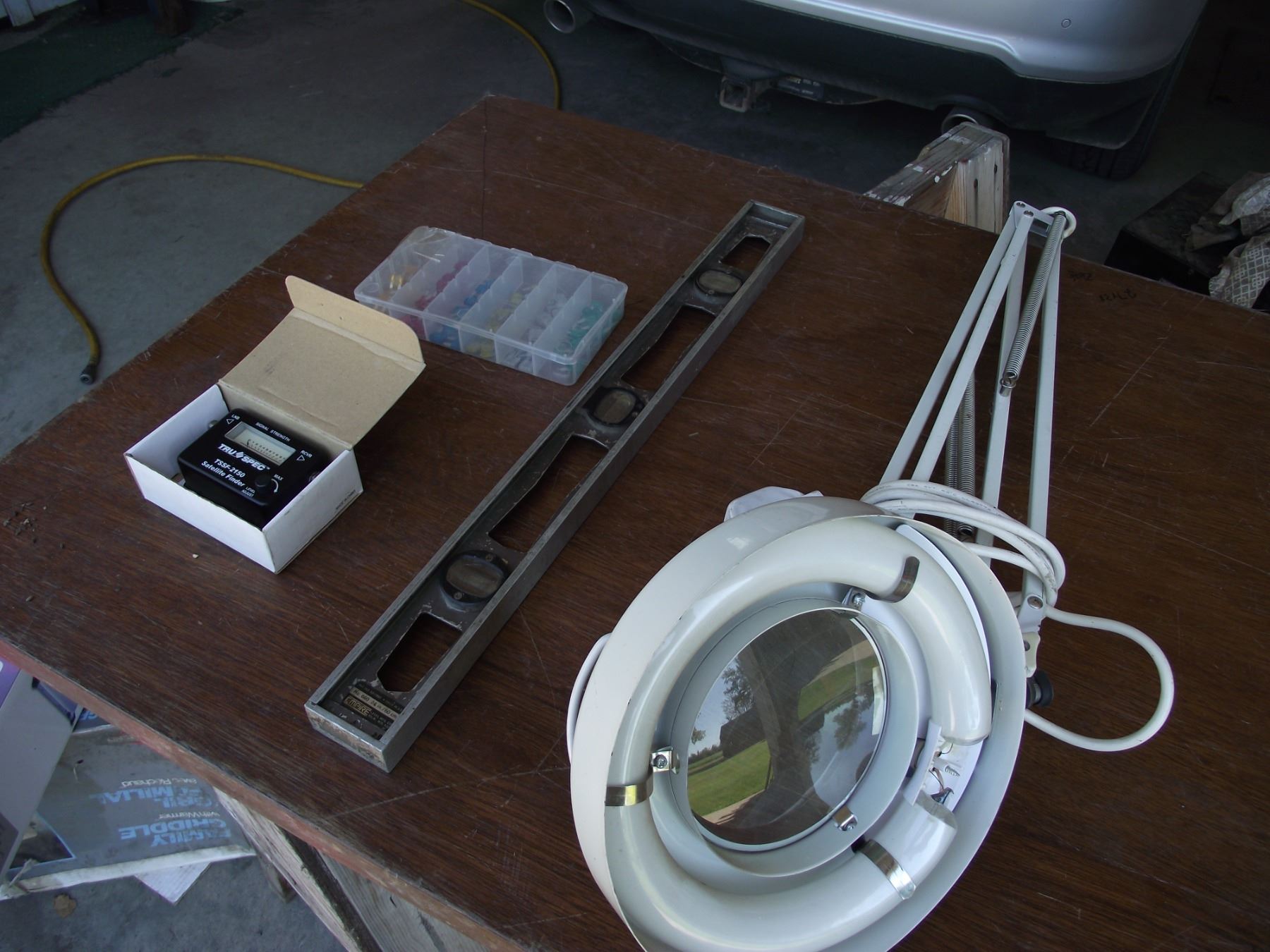 1-Mag desk lamp w/light, Satelite finder, 2 foot level and fuse assortment in case.