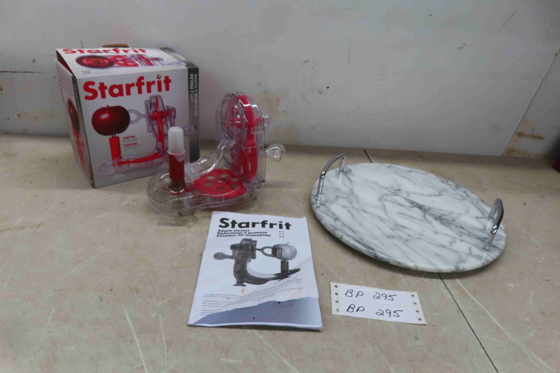 (1) Marble Serving Dish , (1) Starfrit Apple Peeler