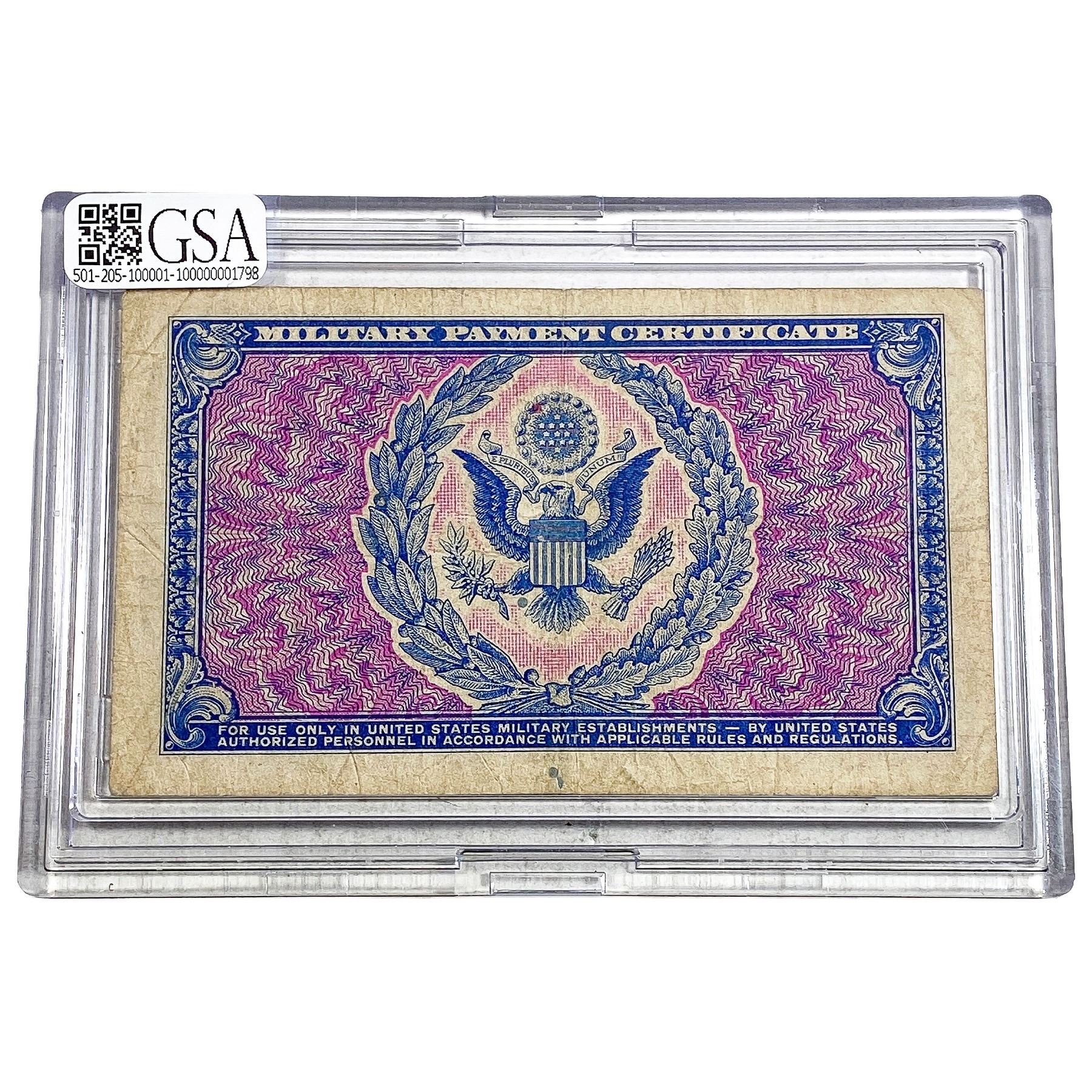 f. Notes sold referencing a third-party grading service are sold “AS IS” without any express or implied warranty, except for guarantee by GSA that they are genuine. Grading, condition or other attributes of any Product may have a material effect on its value and the opinion of others, including third-party grading services such as PCGS Currency and PMG may differ with that of GSA. GSA shall not be bound by any prior or subsequent opinion, determination, or certification by any grading service. Bidders specifically waive any claim to right of return of any Product because of the opinion, determination, or certification, or lack thereof, by any grading service. Certain warranties may be available from the grading services and Bidders are referred to them for further details: Paper Money Guaranty (PMG), PO Box 4711, Sarasota, FL 34230; PCGS Currency, PO Box 10470, Peoria, IL 61612-0470; PCGS Gold Shield, PO Box 9458, Newport Beach, CA 92658. Third-party graded notes are not returnable for any reason whatsoever.