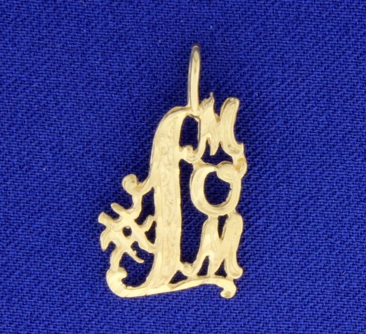 14K yellow gold, it is 1 inch long with bale. 1.3g