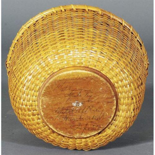 1 NANTUCKET BASKET<BR>11" diameter<BR>signed Mitchell Ray<BR>minor repairs<BR>PACKING AND SHIPPING (excluding insurance) by Fairfield Auction to points within the Continental U.S.A. (all other international must be handled by 3rd party shipper) $40.