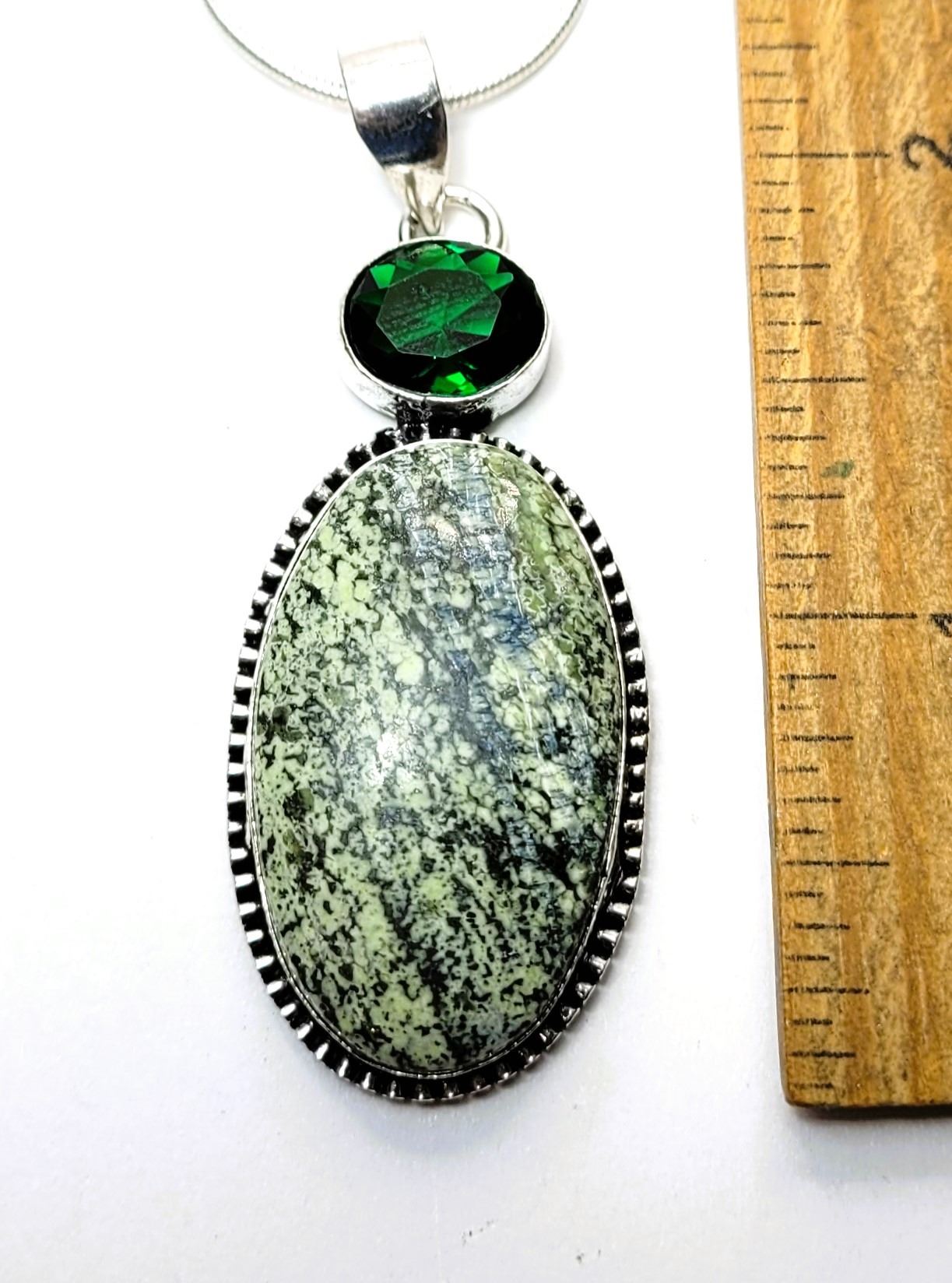 NATURAL GREEN DIOPSIDEOVAL PENDANT ON 20" CHAIN. JEWELRY